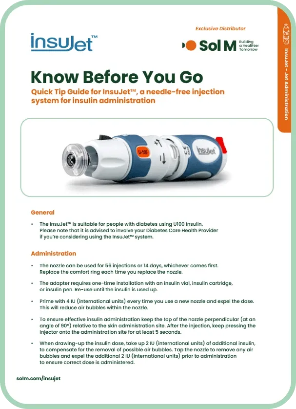 This video goes through the step-by-step process of how to administer insulin with the InsuJet™ Injector.